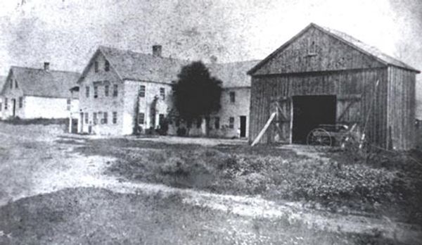 Colony “Big House” (in center background of photo); Peirce mansion in left background, with Peirce farm buildings in left and right foreground.